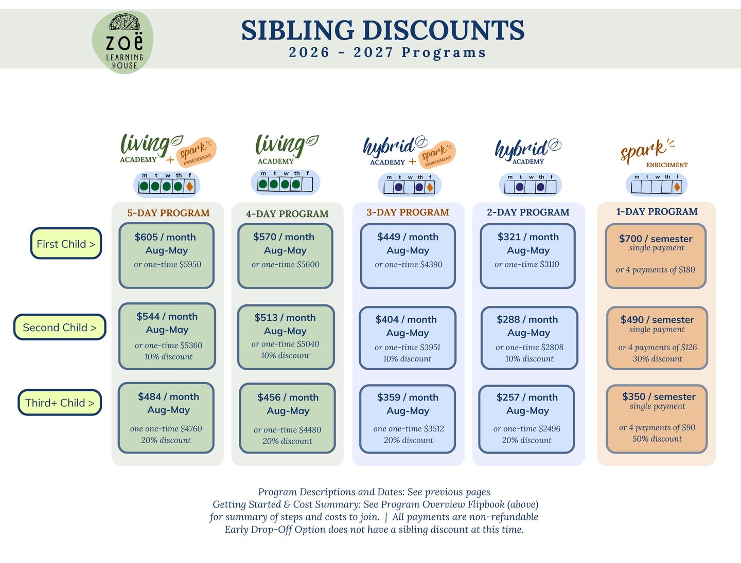 Through our flexible program model, we strive to provide options that financially work for a wide range of families in the Greater New Orleans area. We are also an approved Service Provider for recipients of the LA-GATOR scholarship in Louisiana (home-based education option). In addition, we have a limited amount of needs-based financial assistance opportunities for interested or current families. Applications for Financial Aid are reviewed by our Advisory Board on an annual basis. Consideration will be given to families who share in our mission and vision, as well as demonstrate financial need. Please inquire about Financial Aid via email: info@zoelearninghouse.com