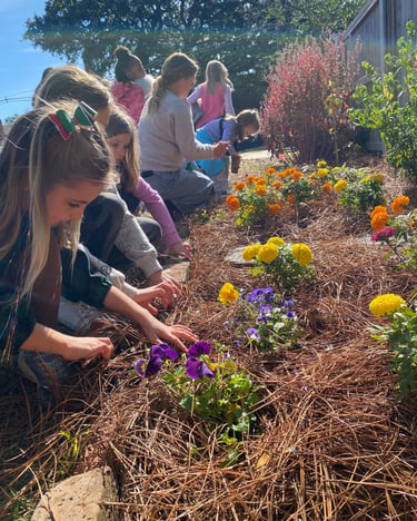 1-2 hours outdoors daily. Beautiful literature. Movement breaks. Gardening. Faith formation. Screen-free, hands-on experiences. An approach where academic excellence and childhood wonder both thrive.