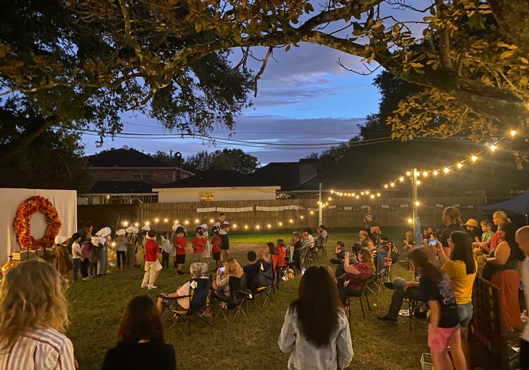 In our beautiful oak-lined space in Algiers, New Orleans, children learn through high quality curriculum, hands-on exploration, and time in nature. In our four-day Living Academy from Monday through Thursday, mornings include small group instruction in literacy and math (1:8 ratio or smaller), ensuring every child is truly known and supported. Afternoons include inspiring lessons drawn from living books on science, geography, history, and literature. Experienced and caring teachers bring faith, character formation, and academic excellence together. Learning happens from 10am-3pm, with play and outdoor time included (early drop off for is available beginning at 8:30am). When your child comes home, they do not have loads of traditional homework assigned, only occasional classwork to finish to stay on track that is respectful of your family's time. Evenings belong to family dinners, outdoor play, creative pursuits, and rest.